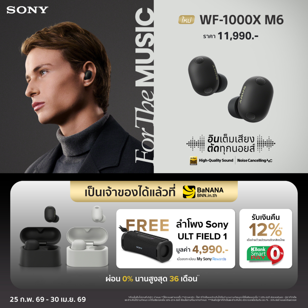 - ซื้อ หูฟังไร้สาย Sony WF-1000XM6 ได้ที่ร้าน Banana สาขาที่เปิดจำหน่าย สามารถช้อปสินค้า IT อีกมากมาย พร้อมรับโปรโมชั่นดี ๆ ได้ที่ Banana Online หรือเลือกช้อปผ่าน Call Center โทร. 02-017-7770 (ตั้งแต่เวลา 09.00-19.00 น.)