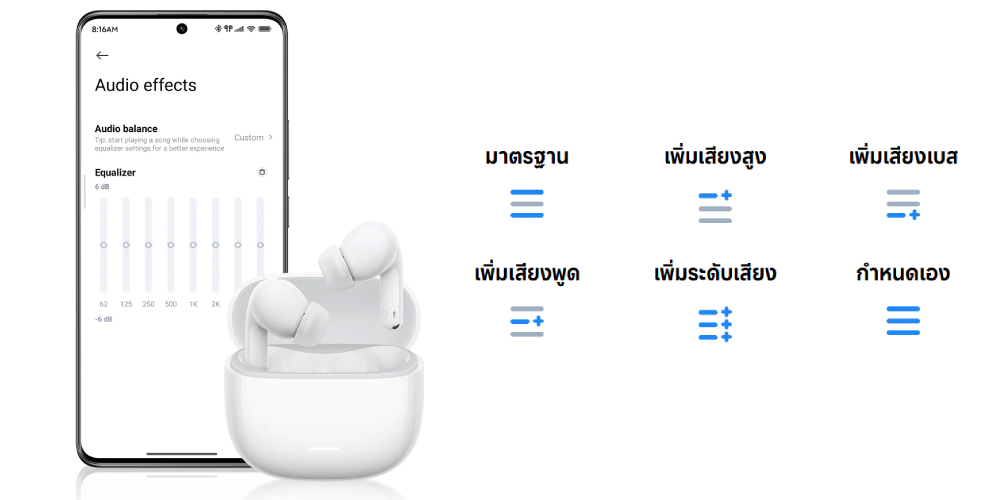 สัมผัสพลังเสียงเหนือระดับกับ Redmi Buds 8 Lite ที่มาพร้อมไดรเวอร์ขนาดใหญ่พิเศษ มอบเสียงคมชัดครบทุกย่านและเบสที่ทรงพลัง ปรับจูน EQ ได้ตามสไตล์ผ่านแอป พร้อมระบบลดเสียงรบกวน AI ไมค์คู่เพื่อการสนทนาที่ชัดเจนในทุกสถานการณ์ บนดีไซน์ที่ออกแบบมาให้สวมใส่สบายได้ตลอดทั้งวัน ซื้อสินค้าได้แล้วที่ BaNANA