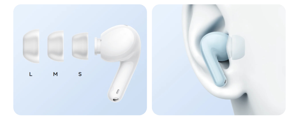 | มีจุกหูฟังหลายขนาดให้เลือกเพื่อความพอดีที่เหมาะสม สามารถเลือกขนาดที่ลงตัวกับรูปทรงใบหูของคุณ เพื่อให้สวมใส่กระชับและมั่นคง | ออกแบบบอดี้ที่โค้งรับรูปหู ช่วยให้กระชับแนบพอดี เพิ่มความสบายเมื่อสวมใส่เป็นเวลานาน ลดแรงกดที่หู และดื่มด่ำกับการฟังเสียงโดยไม่อึดอัด |