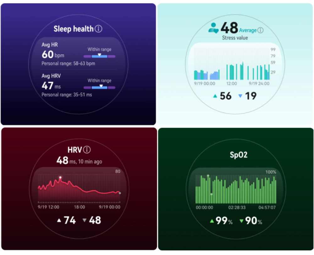 ติดตามการนอนหลับของคุณ ชั่วโมงการนอน อัตราการหายใจ และออกซิเจนในเลือดขณะที่คุณนอนหลับ / วัดระดับความเครียดของคุณ ช่วยฝึกหายใจ เวลาที่คุณมีความกดดันสูง / ติดตามอัตราการเต้นของหัวใจ (HRV) และติดตามสุขภาพของคุณอีกมากมาย